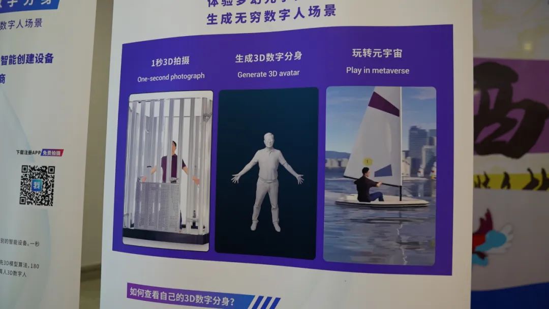 1秒拍照、5秒get数字分身、8分钟数字分身畅游未来青田!3D云阵相机作为元宇宙展区最受期待的打卡点之一,已经安装完成。3D云阵相机通过1秒静态拍摄即可创建写实级真人数字分身,带领观众进入多彩的虚拟世界。相机遍布百余个手机高清摄像头,真人在相机内侧呈静态站姿进行1秒拍摄,最快8分钟即可全自动输出可运动的写实级真人数字人,无论是皮肤的色泽还是肌肉的形态都达到了极高的还原度。