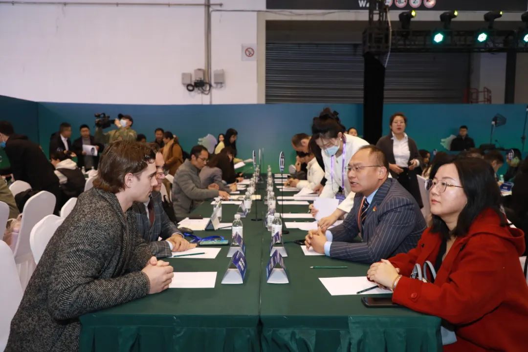 开幕式同步举行了采购商小型洽谈会。来自英国、德国、荷兰、加拿大、肯尼亚等20家境外采购商现场与我市具有代表性的40家供应商面对面进行洽谈。