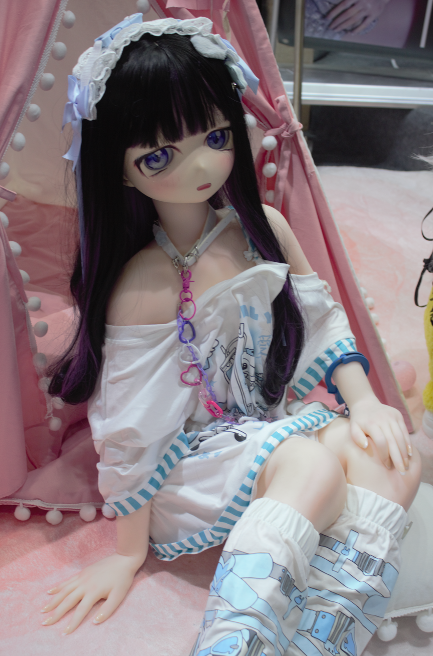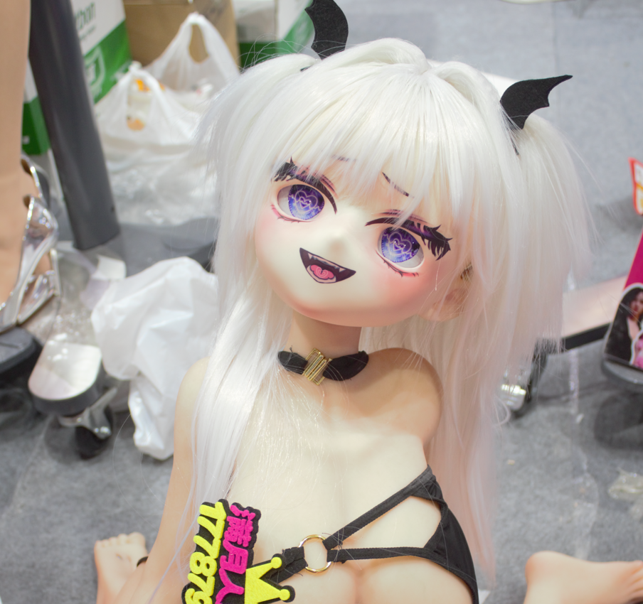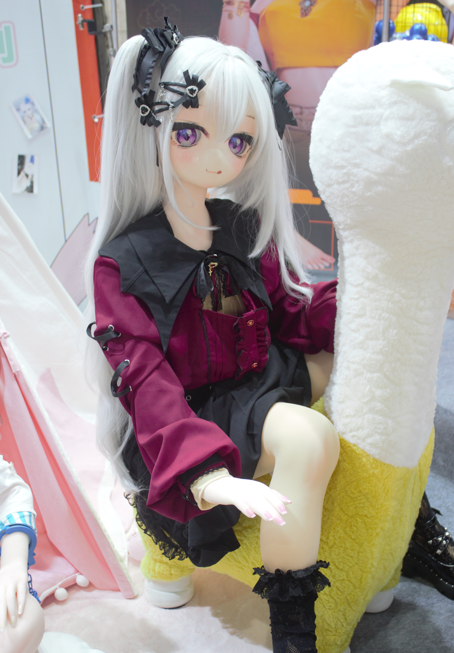 这家娃厂叫睿灵,我没听说过的新厂。这只娃旁边还搭了个巨汉男模,那个我就没拍,我是直男。两个娃的风格像那种玄幻小说中西北部族的妖族大魔,有点特色。这只娃还挺好看,但是丝袜是败笔,这丝袜材质不均匀,非常廉价。隔壁还有个cos碧蓝航线普利茅斯的,已经售出,不知道哪个老板提走了。接着是我比较喜欢的金三家的娃,金三现在也开始涉足二次元娃,并且做的挺好的,拿出了自己老牌厂商的技术力。