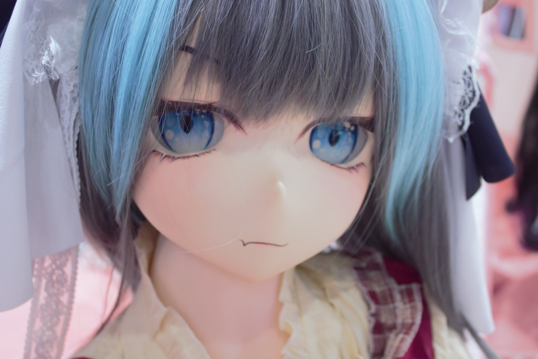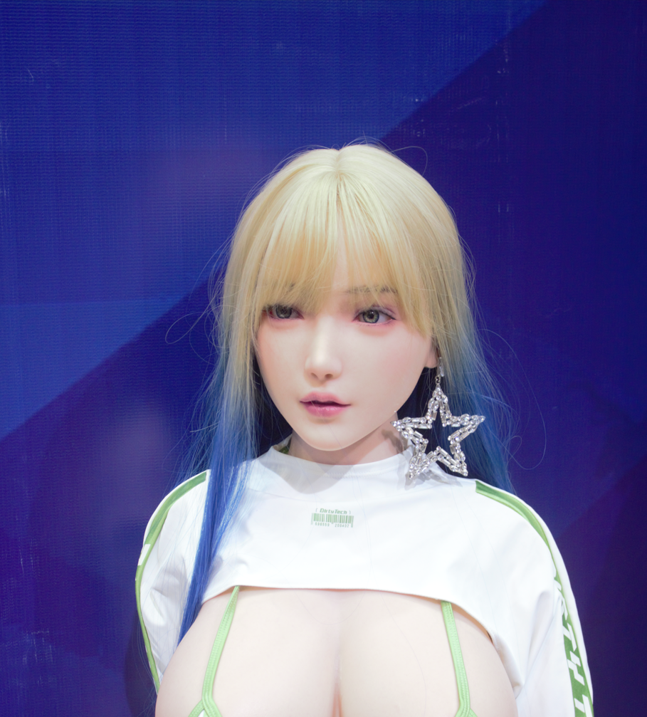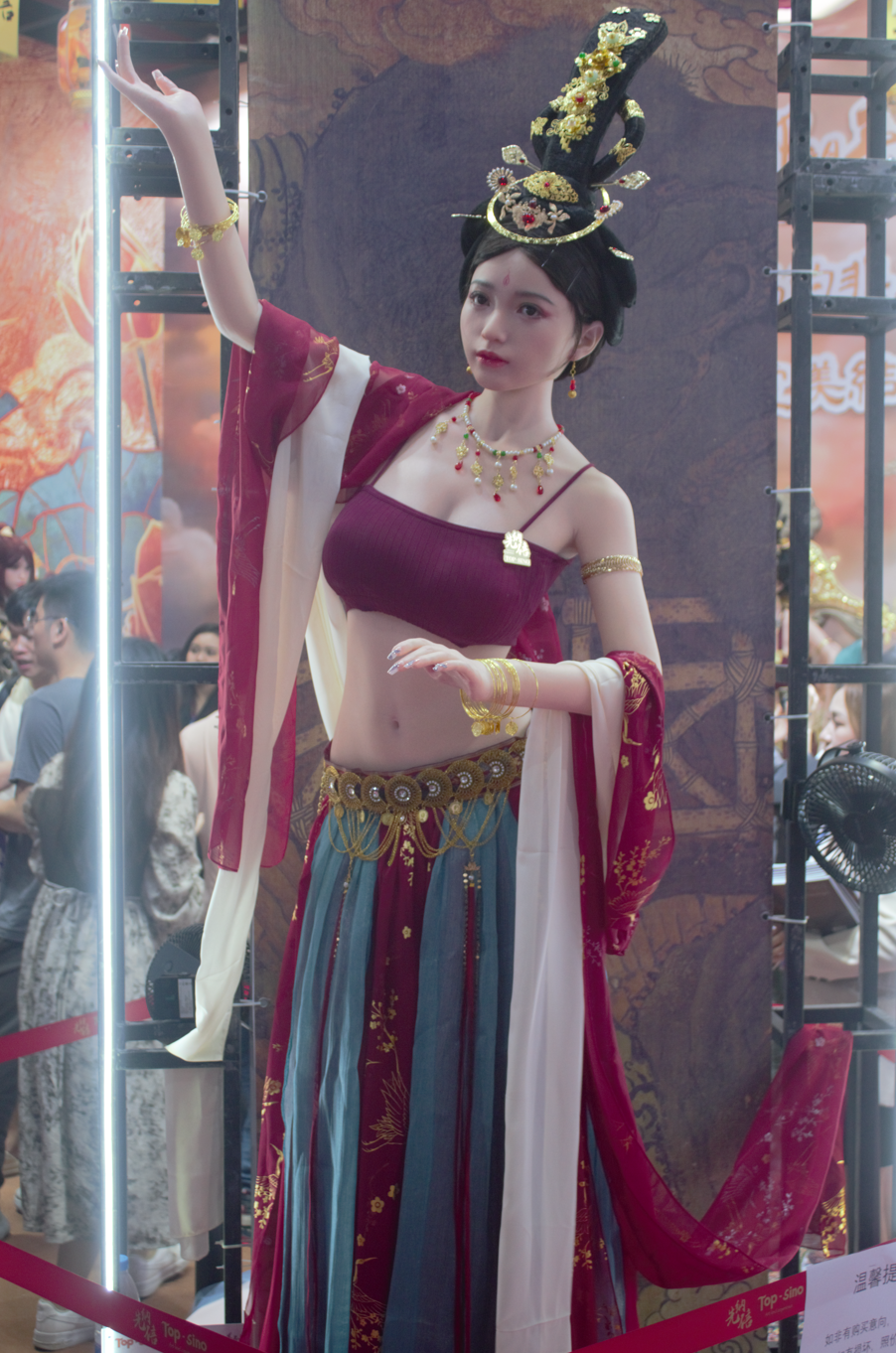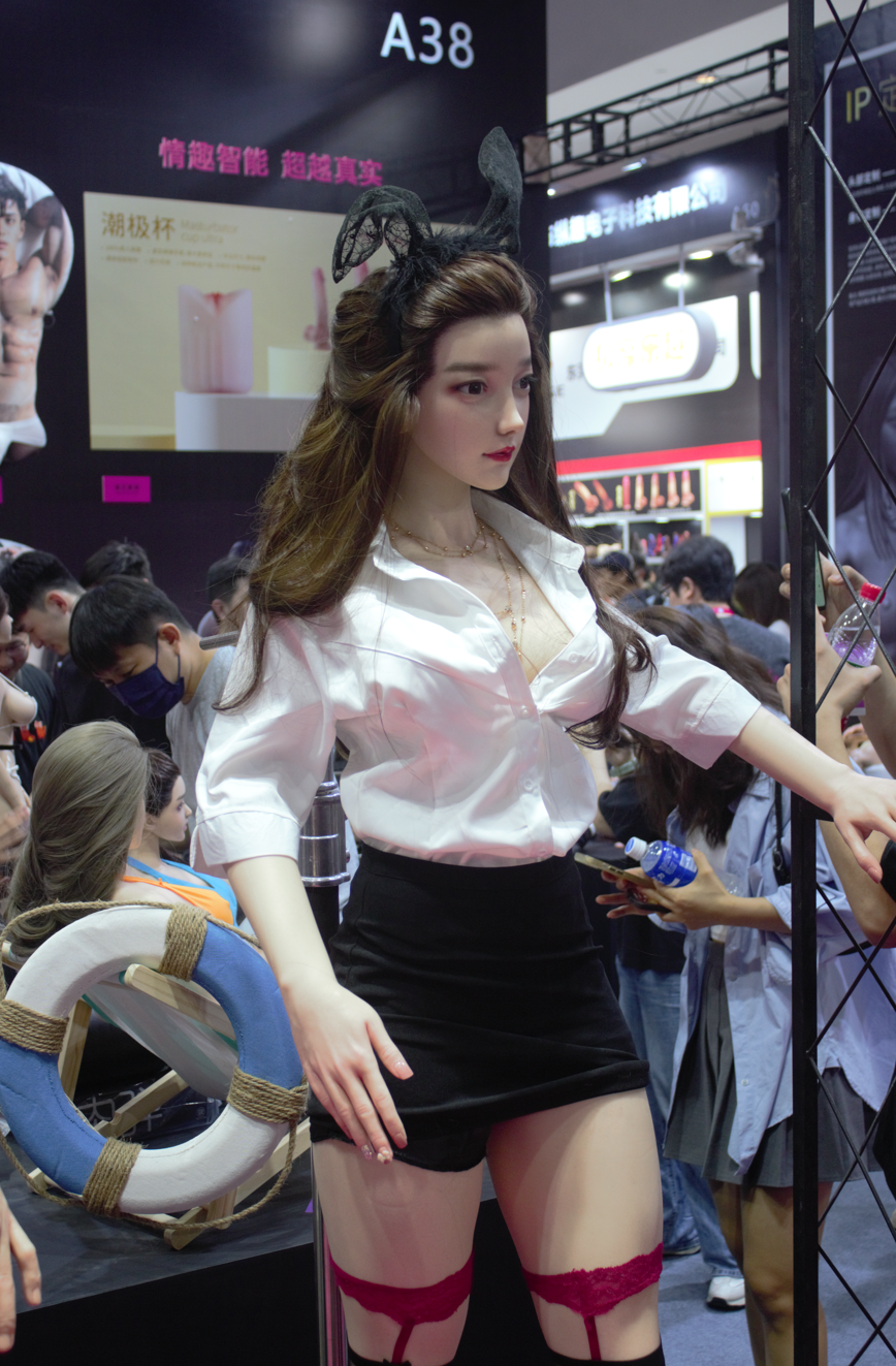 这家娃厂叫睿灵,我没听说过的新厂。这只娃旁边还搭了个巨汉男模,那个我就没拍,我是直男。两个娃的风格像那种玄幻小说中西北部族的妖族大魔,有点特色。这只娃还挺好看,但是丝袜是败笔,这丝袜材质不均匀,非常廉价。隔壁还有个cos碧蓝航线普利茅斯的,已经售出,不知道哪个老板提走了。接着是我比较喜欢的金三家的娃,金三现在也开始涉足二次元娃,并且做的挺好的,拿出了自己老牌厂商的技术力。