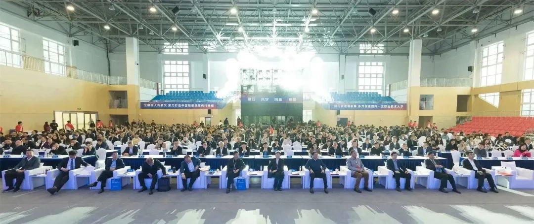 中国机械工业联合会党委常委、原执行副会长于清笈,常州市政协副主席、常州科教城主任祝正庆,江苏省职业技术教育学会秘书长李振陆,机械工业教育发展中心主任陈晓明,中国机械国际合作股份有限公司副总经理、中国机床总公司党委书记、总经理唐亮,中国机械工业联合会智能制造分会秘书长刘前军,中国职业技术教育学会副会长、天津大学职业教育研究所所长孙善学,二重(镇江)重型装备有限责任公司党委书记、董事长杨靖,常州市教育局副局长王华刚,常州市工信局处长于波以及我校党委书记沈琳、校长许朝山等出席开幕式。来自全国装备制造企业、本科院校、职业院校、科研机构等200多家单位的500余名代表参会。