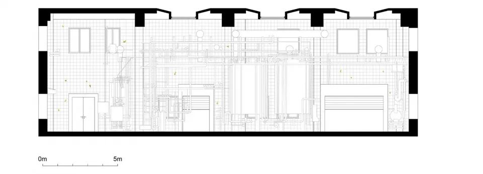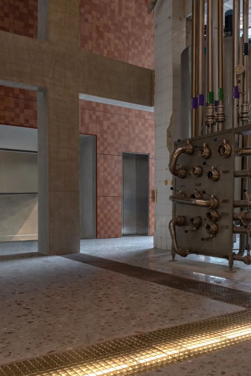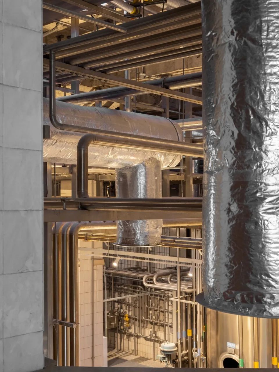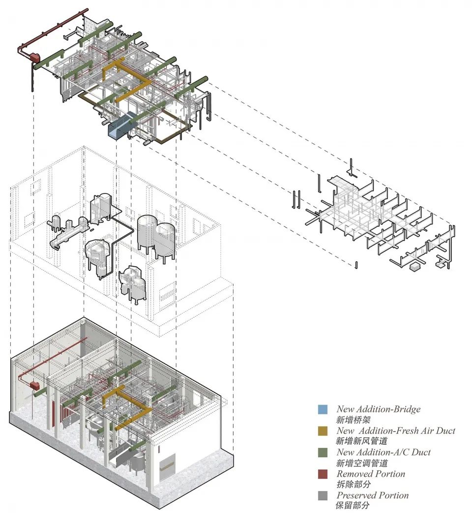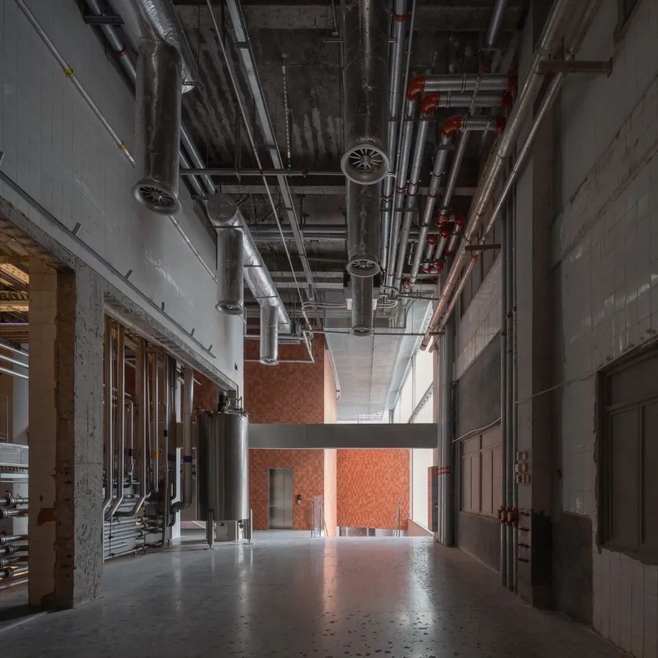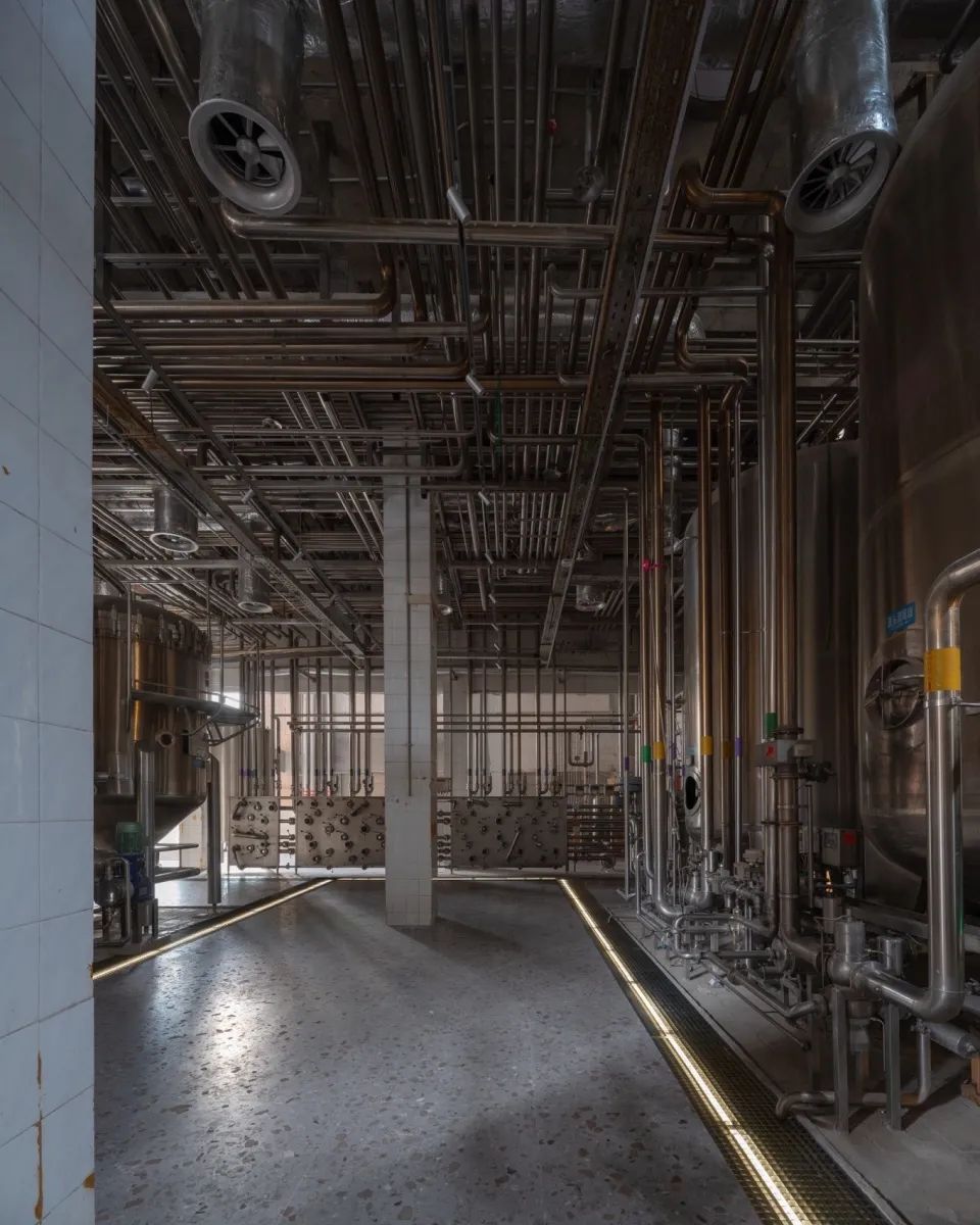 原金威啤酒厂空间作为工业遗存及城市集体记忆的物质载体,对于保育再利用的原厂房空间,我们的室内改造设计策略更多是系统地记录和梳理,进而保留、提炼、再诠释和再现。