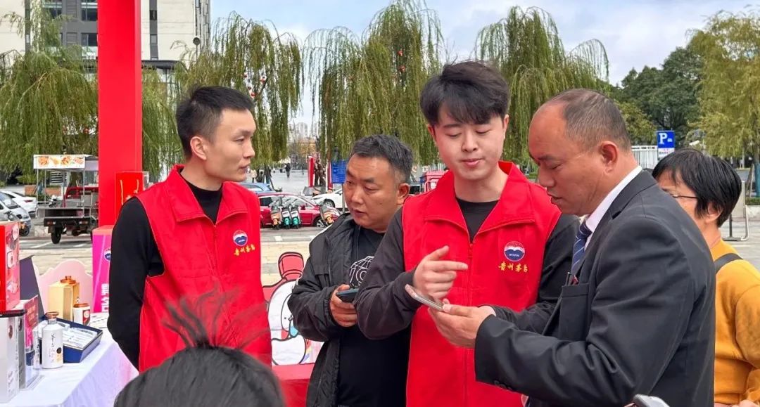 从上午十点开始,陆续有消费者来到展台前咨询。工作人员为咨询者提供了“一对一”的热情服务,引导消费者下载、注册i茅台APP,对APP里的一些功能玩法进行耐心介绍,并给每位注册成功的新用户赠送了精美礼品。