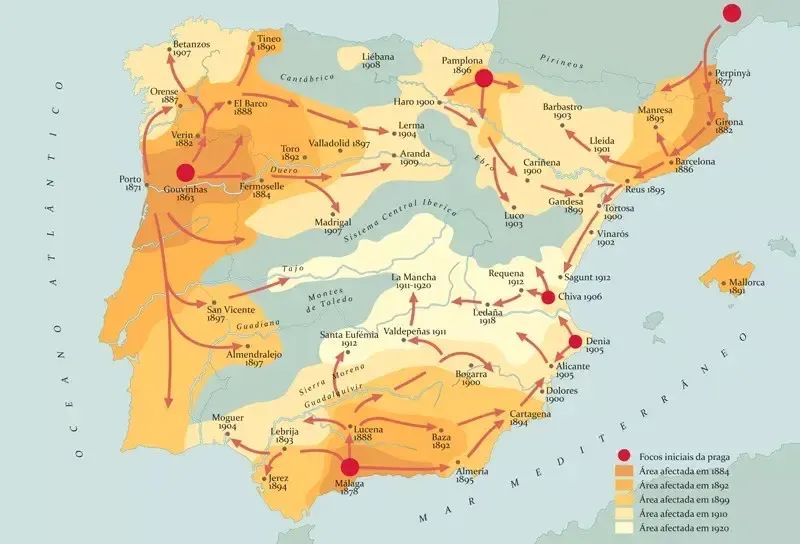 至19世纪末,根瘤蚜已毁灭欧洲大陆三分之二的葡萄园。这还没完,这种小虱子又在全世界开疆扩土,澳大利亚、新西兰、非洲、亚洲等都被入侵了。