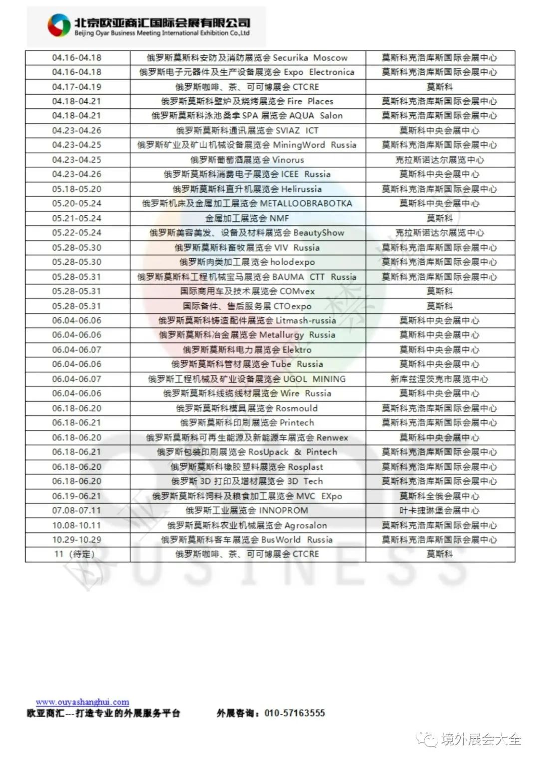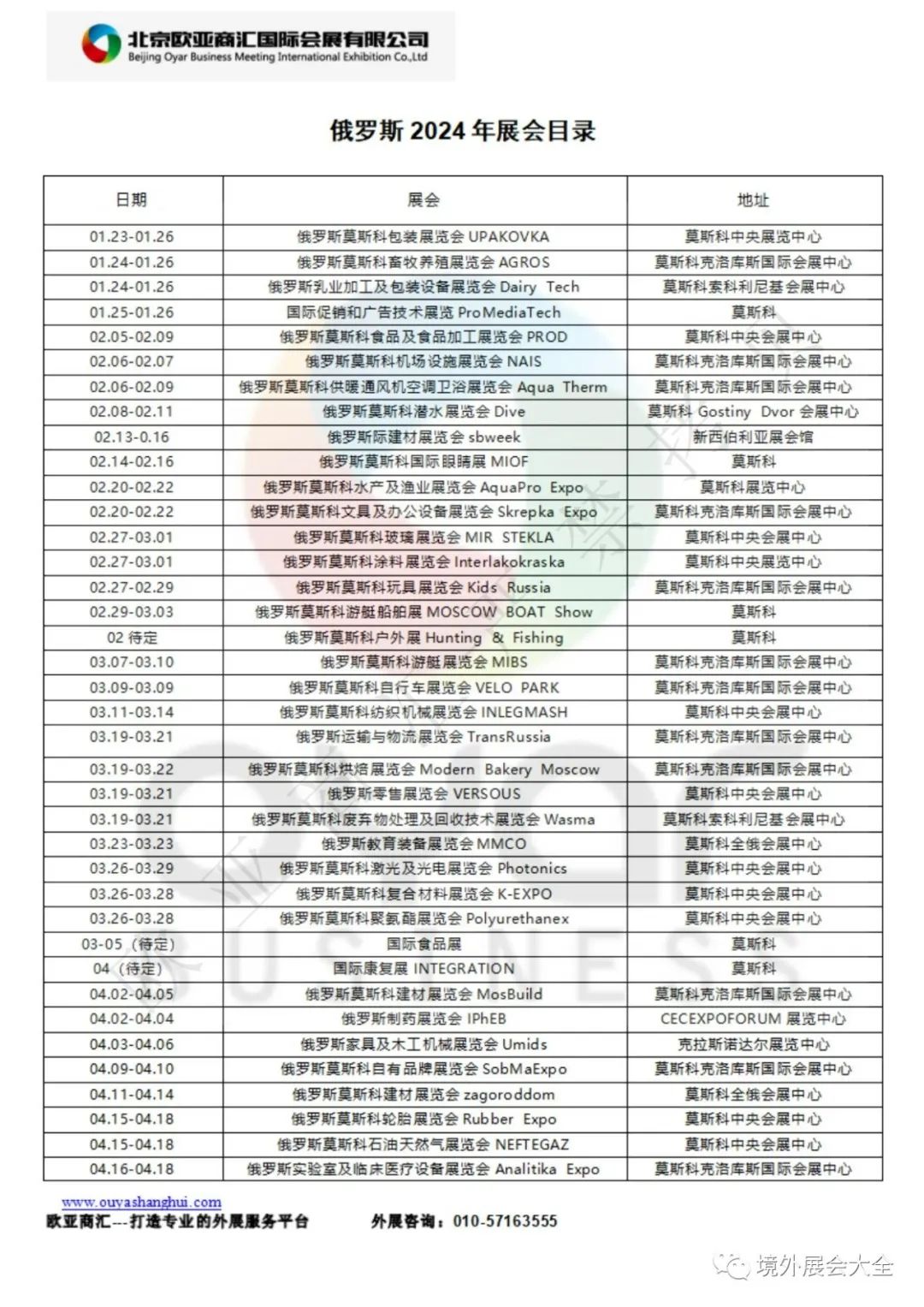 俄罗斯2024年展会目录