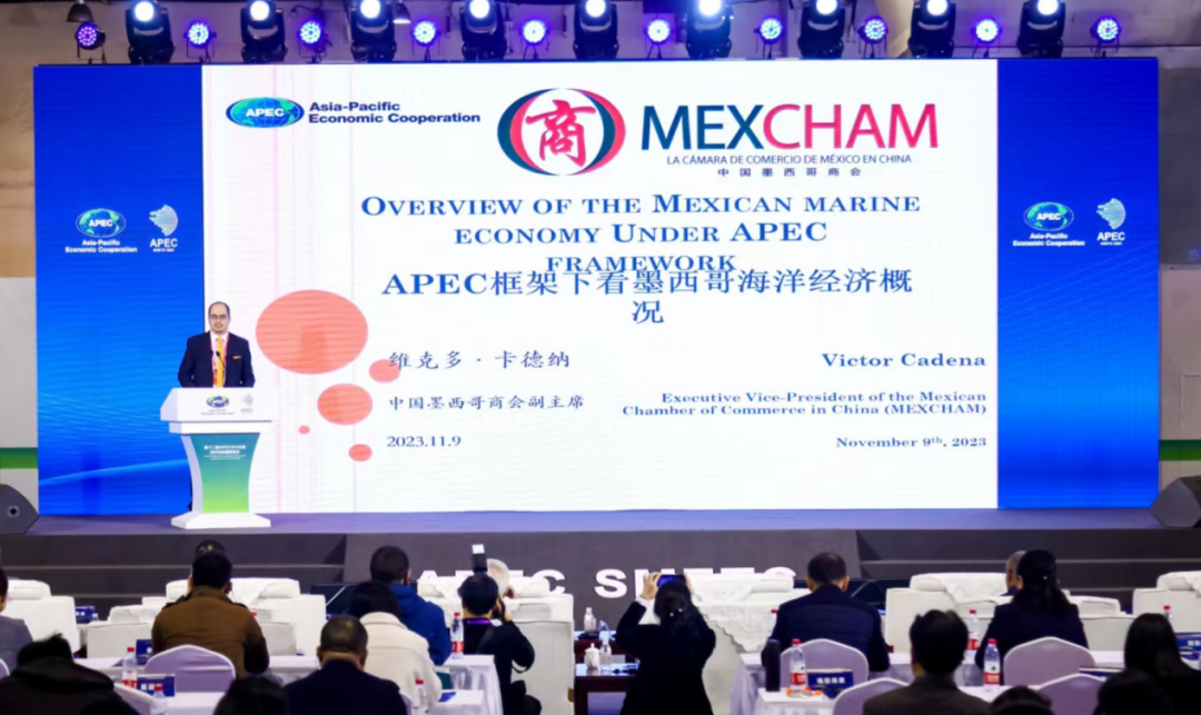 印度尼西亚国家工商总会会长阿尔伯特,中国墨西哥商会副执行主席维克多·卡德纳,青岛明月海藻集团有限公司总裁刘兆志分别围绕国际海洋经济发展与产业融合、APEC框架下的墨西哥海洋经济、专精特新助力海洋产业发展进行主题演讲。