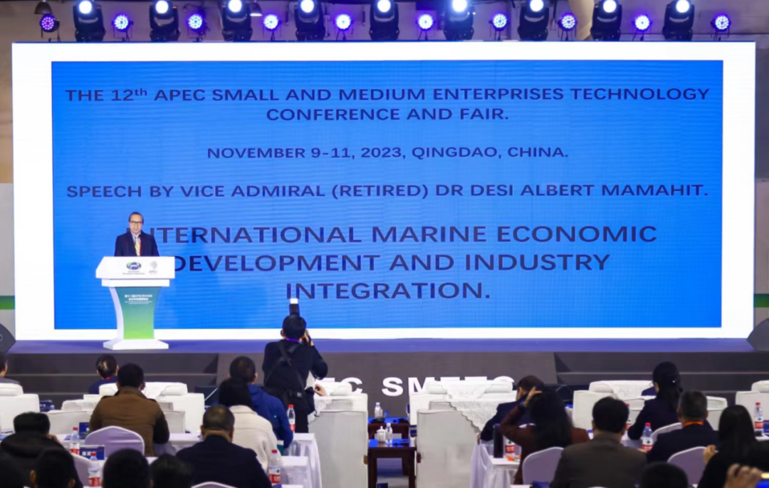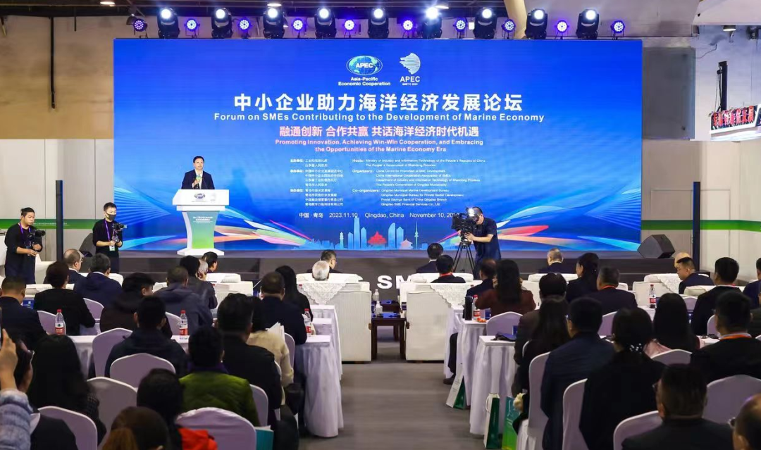 2023年11月10日上午,第十二届APEC中小企业技术交流暨展览会中小企业助力海洋经济发展论坛在山东青岛圆满召开。此次论坛以“融通创新 合作共赢 共话海洋经济时代机遇”为主题,由工业和信息化部以及山东省人民政府主办,中国中小企业发展促进中心、中国中小企业国际合作协会、山东省工业和信息化厅、青岛市人民政府承办,青岛市海洋发展局、青岛市民营经济发展局、中国邮政储蓄银行青岛分行和青岛数字万融共同协办。