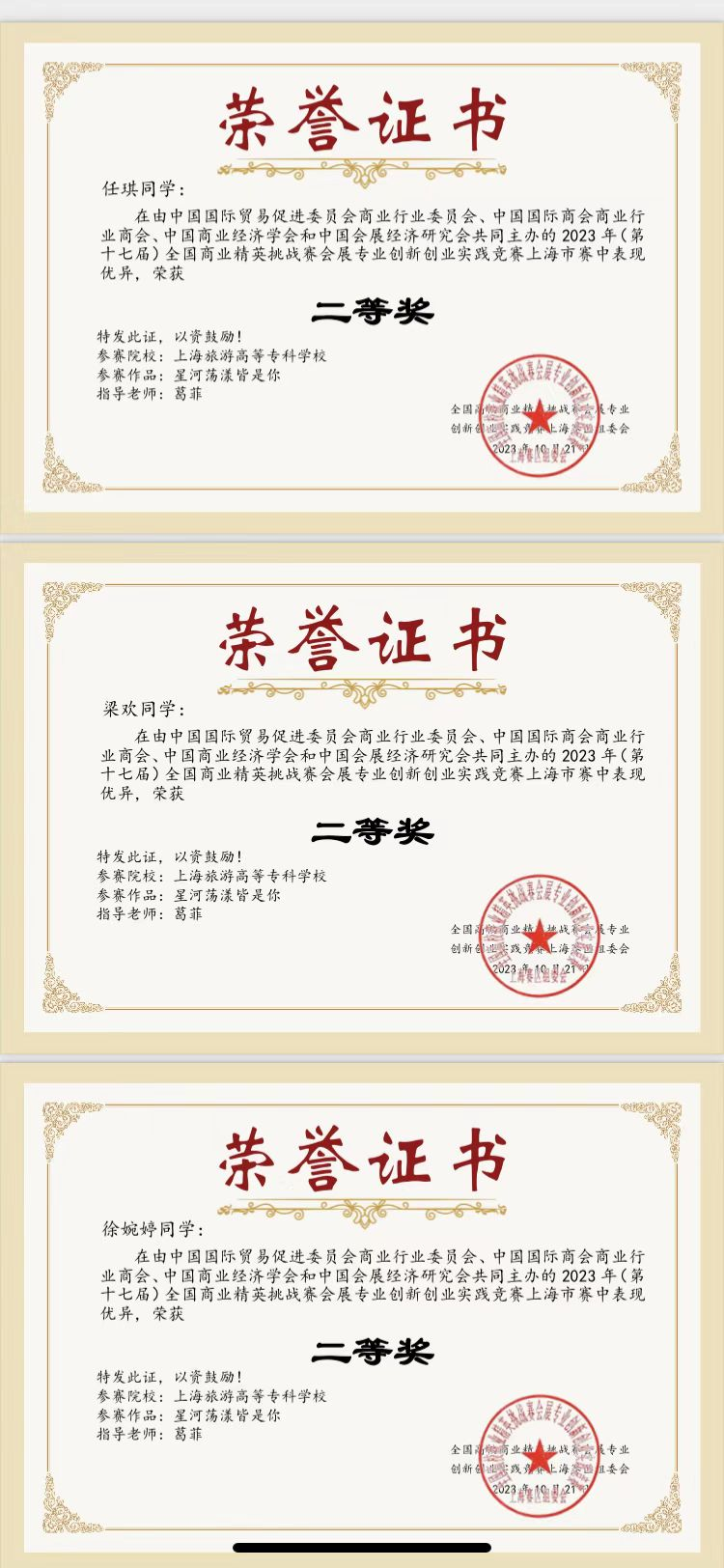在今年10月初我校举办的第十七届全国高校商业精英挑战赛会展专业创新创业实践竞赛上海赛区的比赛中,酒店管理与数字化运营专业(中加合作)两支参赛队伍分别获得酒店管理实践赛道的二、三等奖。这是酒店管理与数字化运营专业(中加合作)与酒店开展产教融合之后在全国赛项上的首次展示,充分体现校企深度合作,将专业建设与产业实际需求对接,突出了职业教育的优势。
