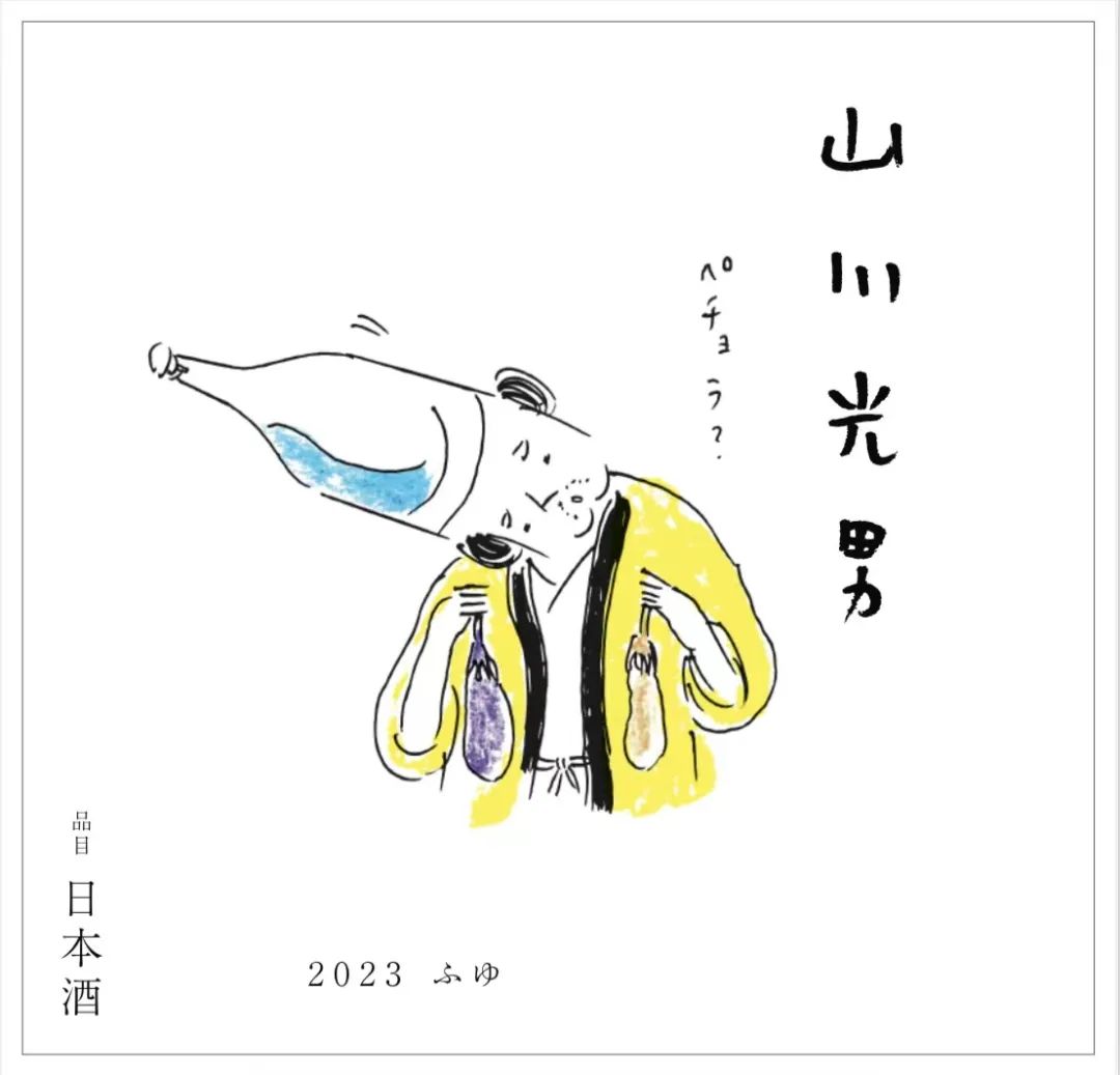 今年的山川光男以发酵食品相配的酒为主题,为了衬托出乳酸和发酵的味道,采用了山废酿造。以大石田町特产的【漬物】为形象的标签。酸辣的【泡菜】是将茄子用盐随后变白后乳酸发酵而成的。在当地也被称为【べちょら漬け】,描绘的是弯脖的光男。