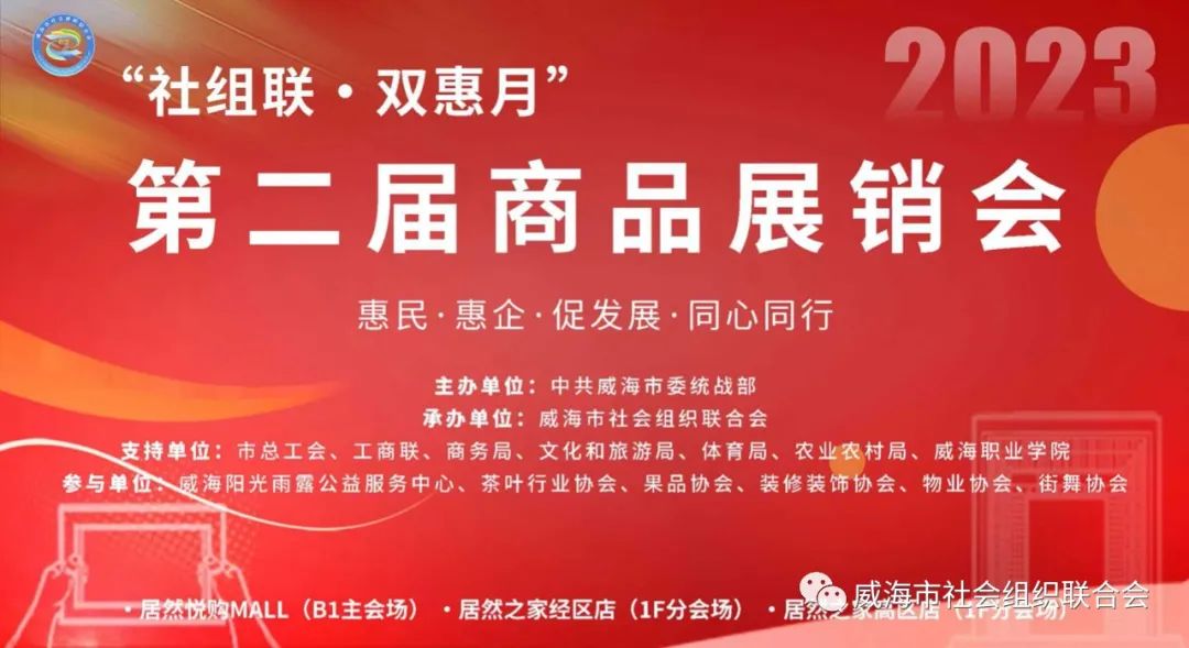 11月11日,2023年第二届社组联·双惠月商品展销会在居然悦购Mall盛大开幕。本次展销会由市委统战部主办、市社会组织联合会承办,得到了市总工会、市工商联、市民政局、市商务局、市文化和旅游局、市体育局、市农业农村局以及市社会组织联合会各成员单位、阳光雨露公益中心和其他行业协会的大力支持。