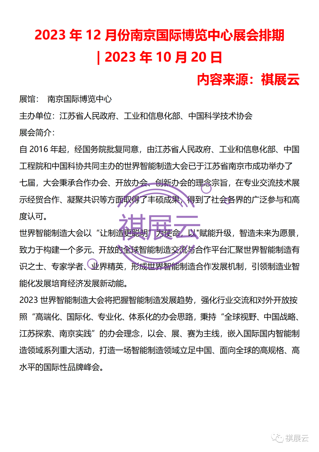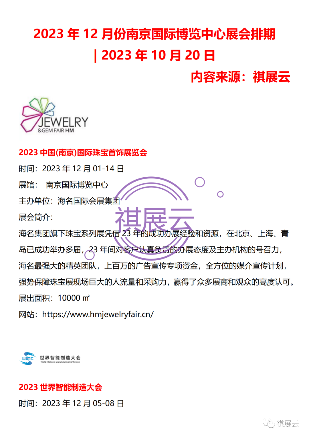 2023年11月份南京国际博览中心展会排期| 2023年9月20日