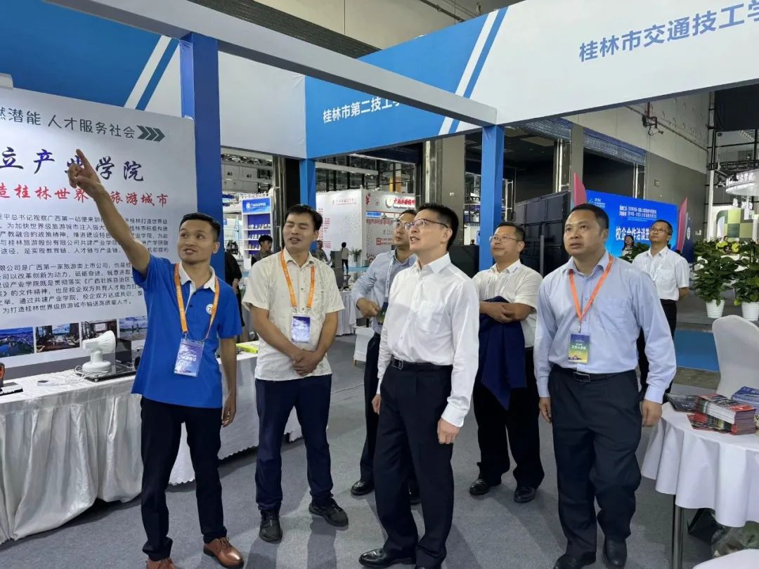通过此次参展,让我们看到了职业教育发展新趋势,拓展了学校教学改革新思路;下一步,我校将紧跟市场需求,着眼深化产教融合,注重加强与桂林产业园区、行业企业的联系和交流,紧紧依托高技能人才培训基地和产业学院、工匠学院等丰富的教学资源,努力在高技能人才培养、社会服务等方面取得更大的成绩,为打造桂林世界级旅游城市贡献更大的力量。