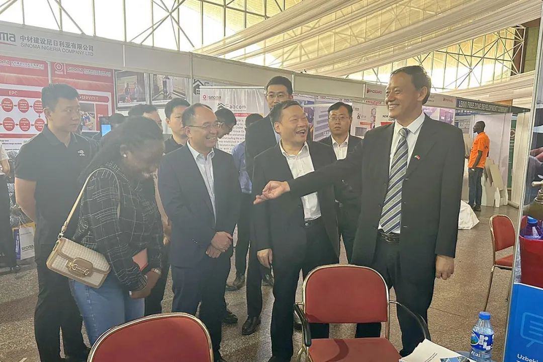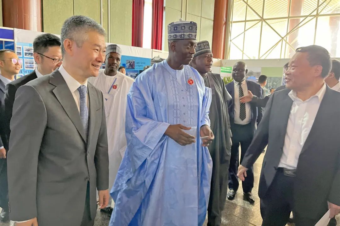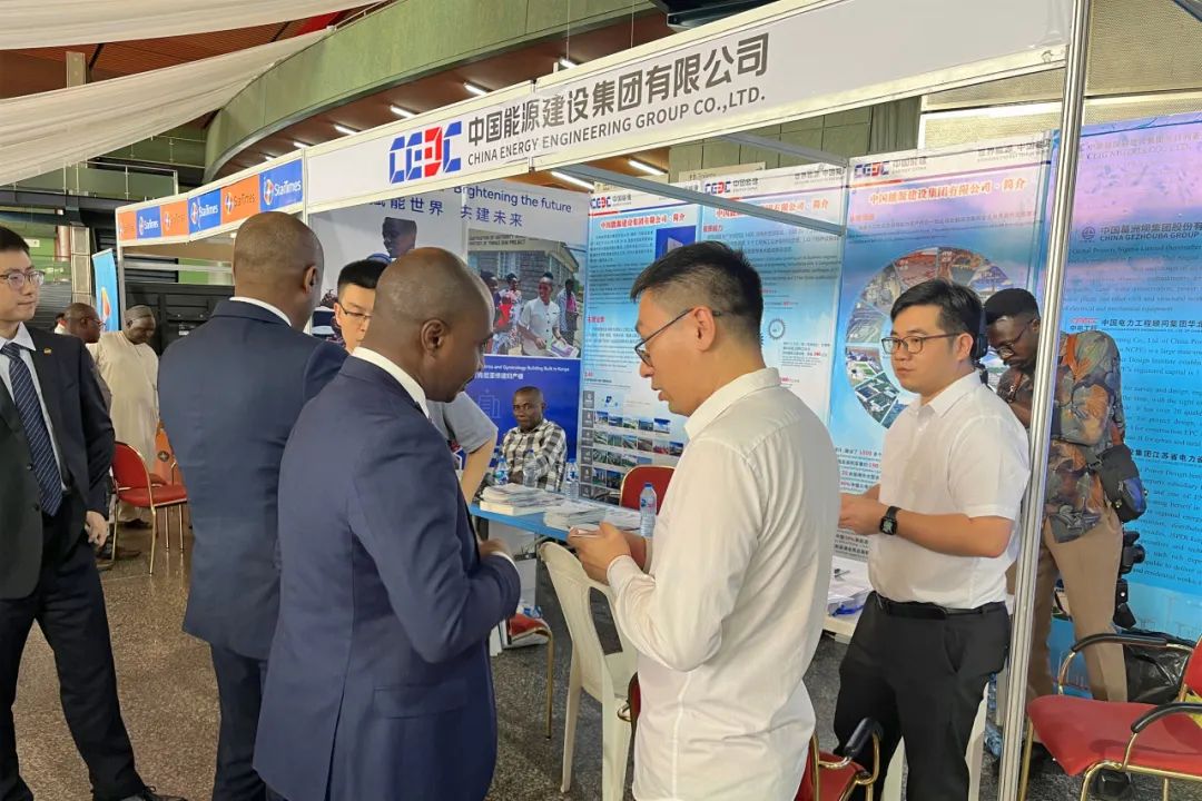 中国能建展区以“绿色丝路”为主题,向尼中客户推介中国能建在绿色低碳发展、服务非洲方面的新理念、新举措、新作为,通过发放宣传折页、播放企业宣传视频、中尼员工介绍等形式,与尼联邦财政部、尼联邦水资源部、尼联邦电力部、尼联邦矿产和钢铁开发部等二十余家部委以及建筑公司、咨询公司、银行、媒体建立联系。尼众议院尼中关系委员会主席,驻尼使馆经商处王颖琦公参、李旭大参赞,总商会代表等莅临中国能建展台。