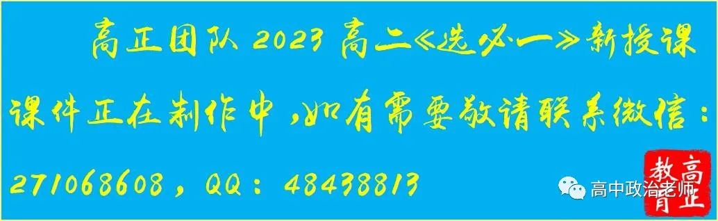 1.高正团队2023《选必一》新授课正在制作中,如有需要可以联系高正老师微信号271068608或QQ48438813。
