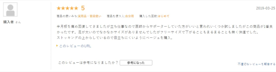 “……拿到护具就开始使用,穿戴一天后我简直离不开它了。对我膝盖非常有用,固定支撑效果非常明显。 ”