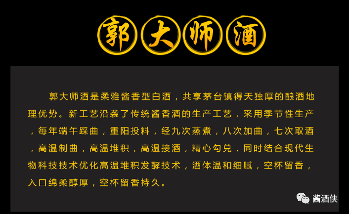 郭坤亮大师作为中国贵州茅台酒厂的副总工程师,打造出柔雅酱香型白酒,并推出了郭大师柔雅酱香酒品牌,如今在酒圈中也算是小有名气,而从郭坤亮53柔雅酱香价格表中,可以看出其主打的是中高端年份酒,抛开价格不论,其品质和口感确实相当不错,而且更容易入口。