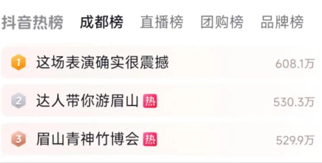 截止11月12日,本次活动达人网红媒体等发布各类视频图文信息323条,直播36场,曝光量达5239万次,话题#眉山青神竹博会 登上抖音热搜top3,#达人带你游眉山 登上抖音热搜top2。