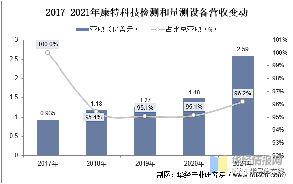 康特科技成立于1987牛,总部位寸以色列米格达勒埃姆克。该公司是半导体行业高端检测和量测设备的制造商,其产品应用于前道、先进封装等领域,为众多行业内领先的全球IDM、OSAT和代工厂提供服务。根据康特科技2021年年报披露显示,其全年实现营业收入2.70亿美元,其中检测和量测设备营收2.59亿美元,占比96.2%。
