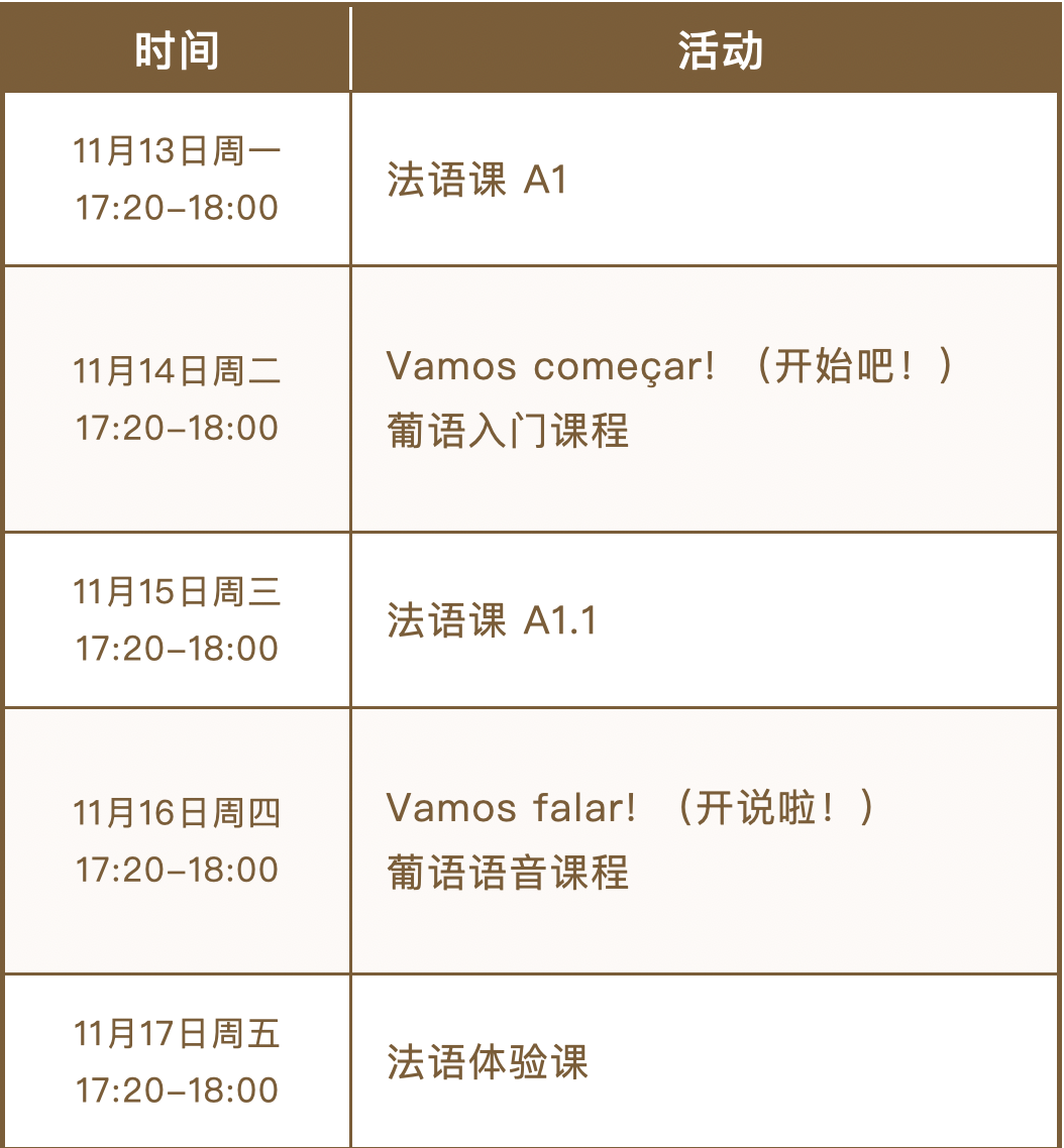 2023-2024学年秋季学期晨读和第12周晚间活动安排如下,晚间活动提前报名的同学方可到现场参与活动,进行打卡。以报名成功的打卡记录为准。