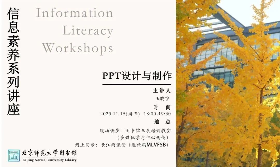 ❍11月15日,将举办主题为“PPT设计与制作”的讲座
