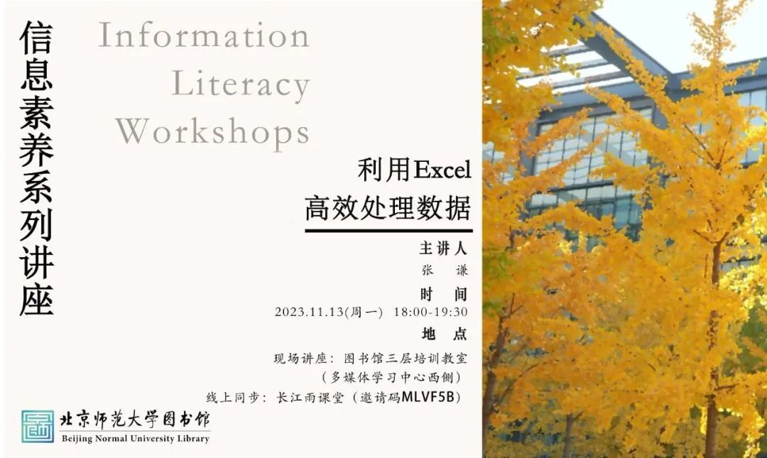 ❍11月13日,将举办主题为“利用Excel高效处理数据”的讲座