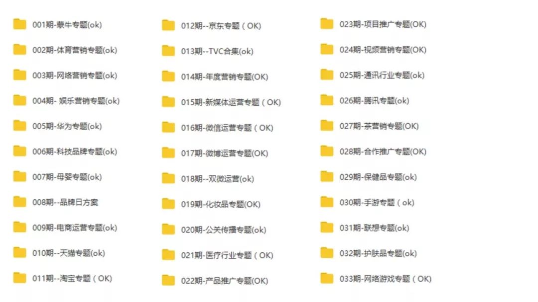 更新由4A公司、创意热店等出品的最新线上营销案例、品牌资源,包含2020-2023年最新的家电、家居、旅游、汽车、酒店、电商、互联网、金融、保险、服装、美妆、快消品、医疗、餐饮等方案,涵盖各行业的品牌案、公关案、定位案、传播案、社会化传播、新媒体传播、推广案、营销案、大厂品牌结案报告等等。