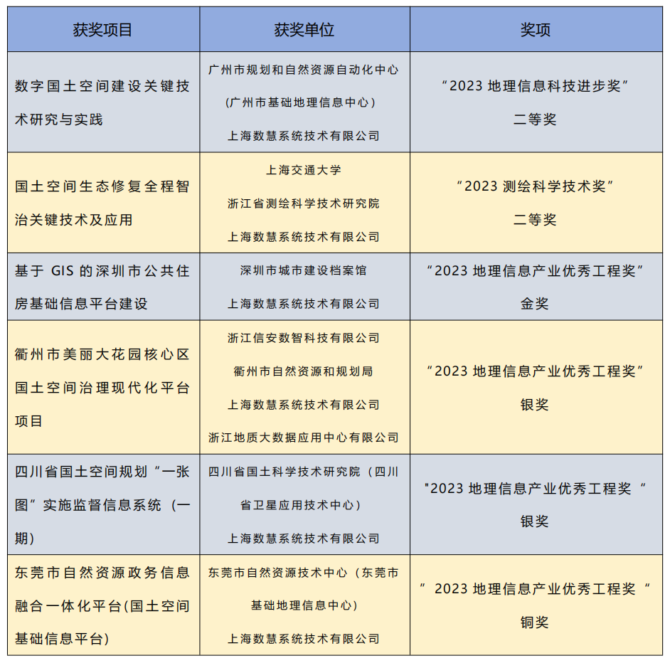 开幕式环节,大会正式公布和表彰了2023年测绘科学技术奖、2023地理信息产业优秀工程奖等荣誉奖项。上海数慧6项案例分别入围2023地理信息科技进步奖、2023测绘科学技术奖及2023中国地理信息优秀工程奖。