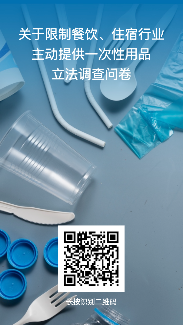 为了进一步了解消费者对条例草案立法限制餐饮、住宿行业主动提供一次性用品的意见,使立法更好反映群众意愿,现面向社会进行立法问卷调查。广西人大诚邀您填写问卷,共同为生态文明建设促进立法建言献策。感谢您的参与和帮助!