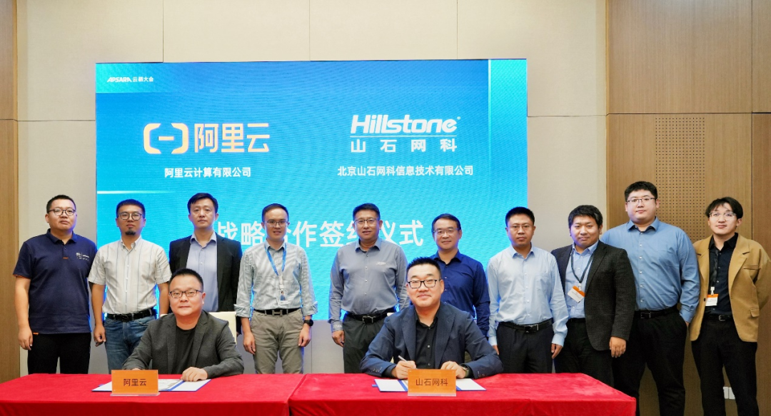 近日,阿里云栖大会在杭州盛大举办。大会期间,北京山石网科信息技术有限公司与阿里云计算有限公司签署了战略合作协议,在原有的云防火墙和经典网络硬件防火墙合作基础上,扩展更多领域的新合作。山石网科产品、研发及技术团队,阿里云安全产品及生态团队,共同参与了此次签约仪式。