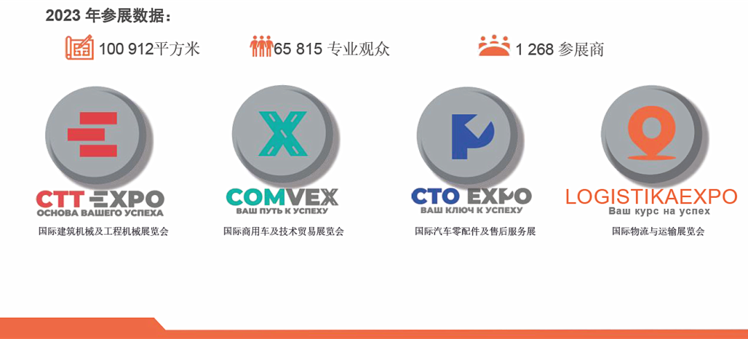 1、四展同期、俄罗斯最大展会:Logistika Expo物流展将与 CTT Expo俄罗斯国际建筑机械及工程展览会(原慕尼黑工程机械宝马展的莫斯科站)、CTO Expo俄罗斯国际商用车及技术贸易展览会、COMvex俄罗斯汽车零配件及售后服务展同期举办,四展同期举办将占据 Crocus Expo 整个室内外展馆,总面积超过 25 万平米,这将是 2024 年东欧最大的展会项目之一。今年受到外部制裁的影响,欧盟与俄罗斯的货物运输边境关闭,物流陷入低迷状态。链条被打破,市场价格下降,停车场维护问题变得显而易见。但根据俄罗斯统计局的数据,作为经济整体发展指标之一的公路货运水平处于正值区域。就资金而言,市场也在增长。根据运输公司Delko分析师的计算,2022年FTL运输市场的交易量将达到1.9万亿卢布。这比2021年增加了 5%。