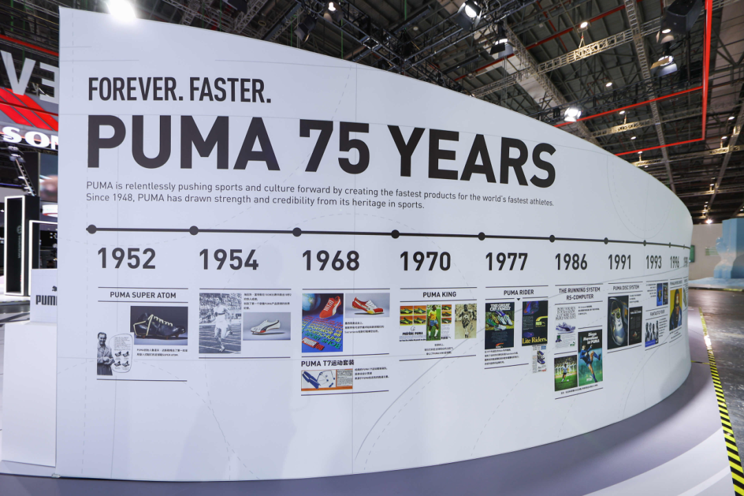 正值品牌成立 75 周年之际,Puma 今年以“彪马 75 周年,彪速未来”为主题,再度参展进博会。除了带来了一系列经典产品之外,此次品牌还特别呈现 75 周年历史墙,并特设曼城俱乐部主题陈列区,记录品牌的荣耀时刻。