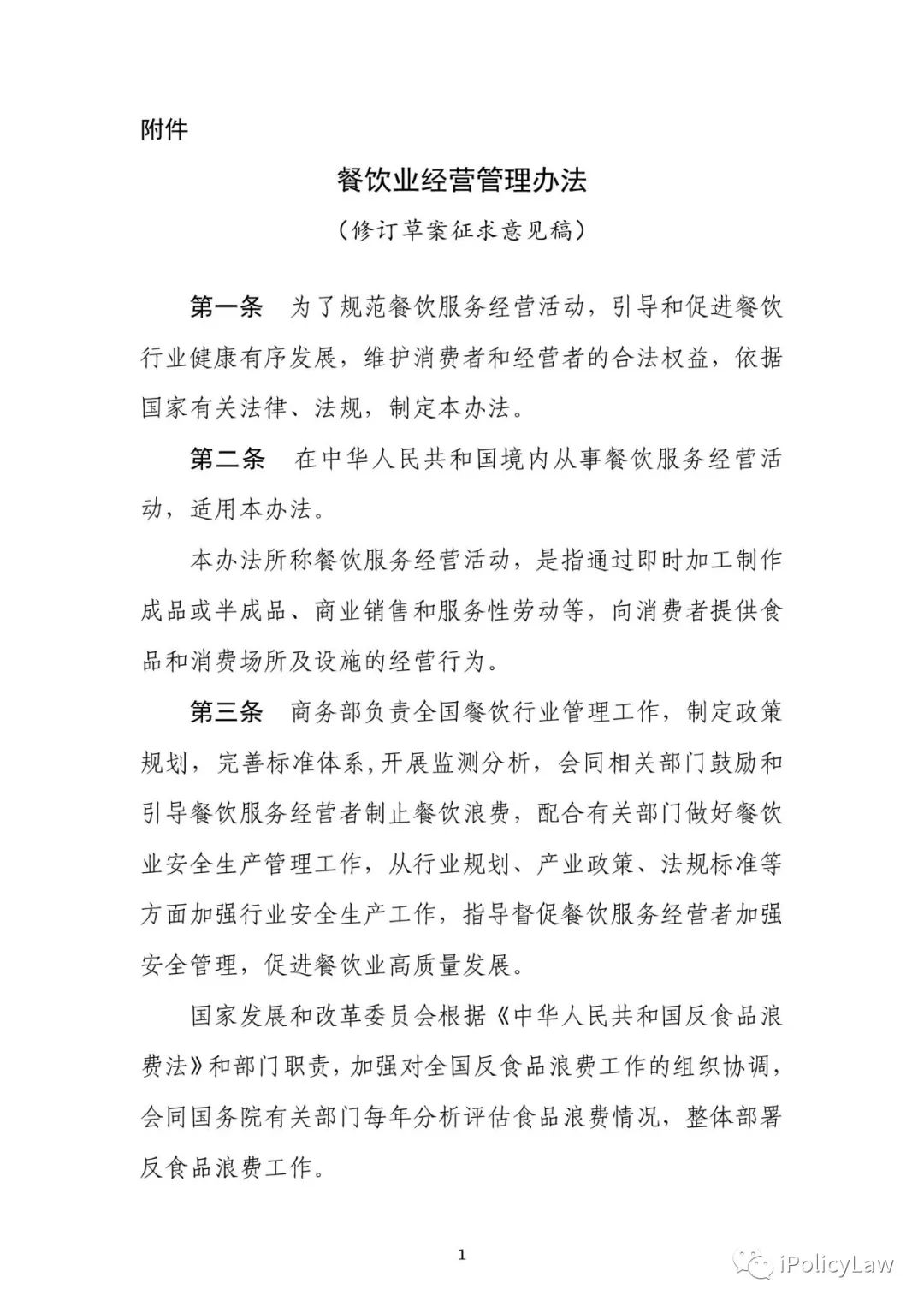 关于《餐饮业经营管理办法》(修订稿)公开征求意见的通知