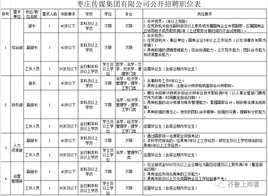山东国企,枣庄传媒集团有限公司公开招聘公告