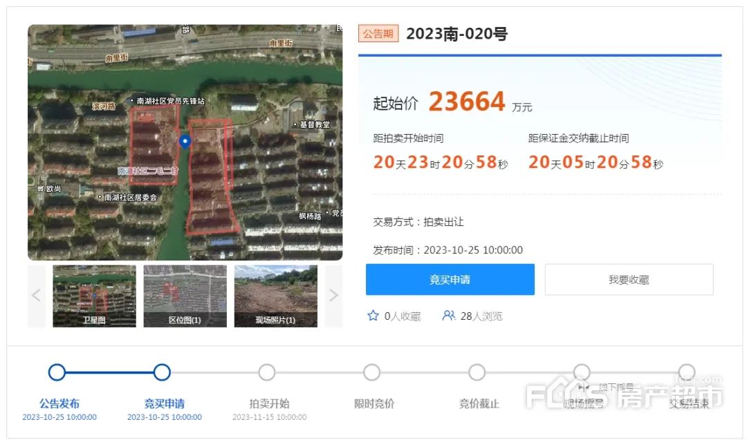 本周三(11月15日),市本级又有一宗城市有机更新地块即将出让。2023南-020号地块来自南湖街道,西侧为新湖绿都小区,地块被水系分割成东西两部分。地块出让面积为22205㎡,最大容积率1.6,计容体量约3.55万方,是一宗小体量低密宅地,起始楼面价6661元/㎡,具有低总价的特点,对房企来说有一定吸引力。根据出让条件,该地块跟此前出让的几宗城心宅地一样,须同步配建回迁房,价格区间为16500元/㎡—18400元/㎡。从区位来看,该地块是纯正的主城心优质宅地,往西不到1公里便是南湖风景区和嘉兴口碑靠前的商业体南湖天地,周边配套成熟且居住氛围浓厚。