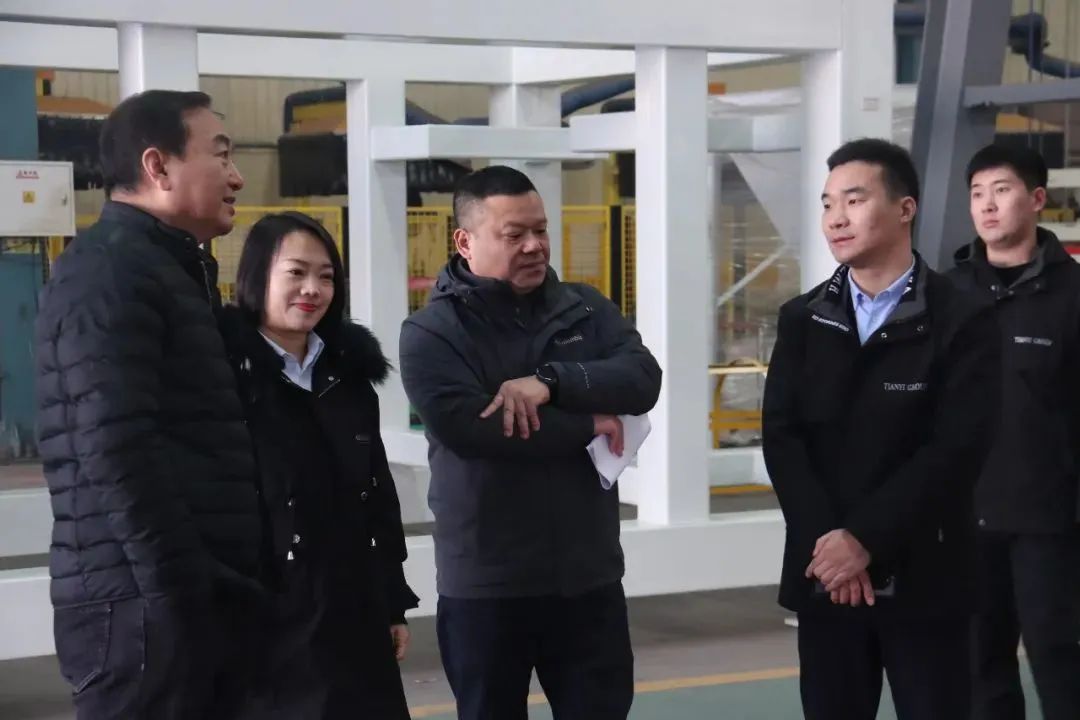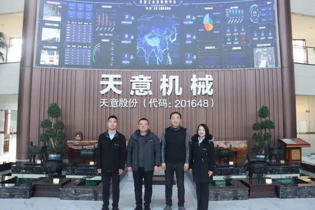1月5日上午,中国建筑材料工业规划研究院院长特别助理王新捷、中国绝热节能材料协会一体板分会常务副秘书长王林到天意机械调研。天意机械董事长刘洪彬、一体板事业部总经理刘革、国内销售经理秦艳慧等陪同调研。