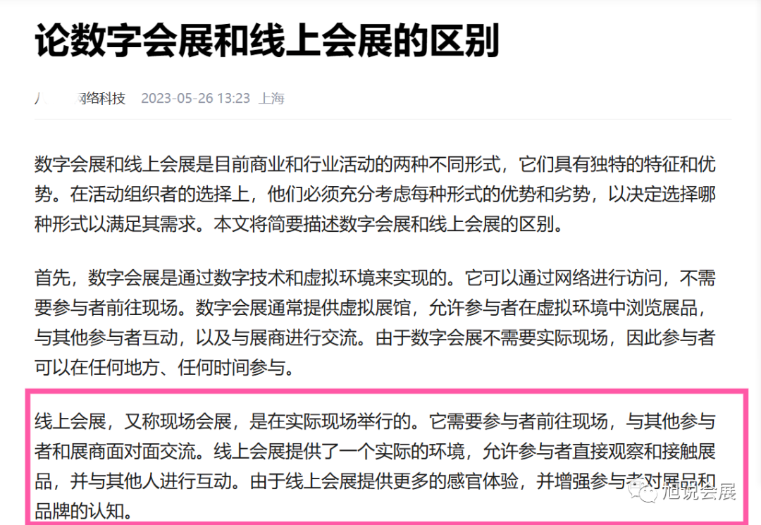 准确地说应该是线上展会,因为“展会”才是会展公司运作并且能够创造效益的“项目/业务”,是一个产品/商品。