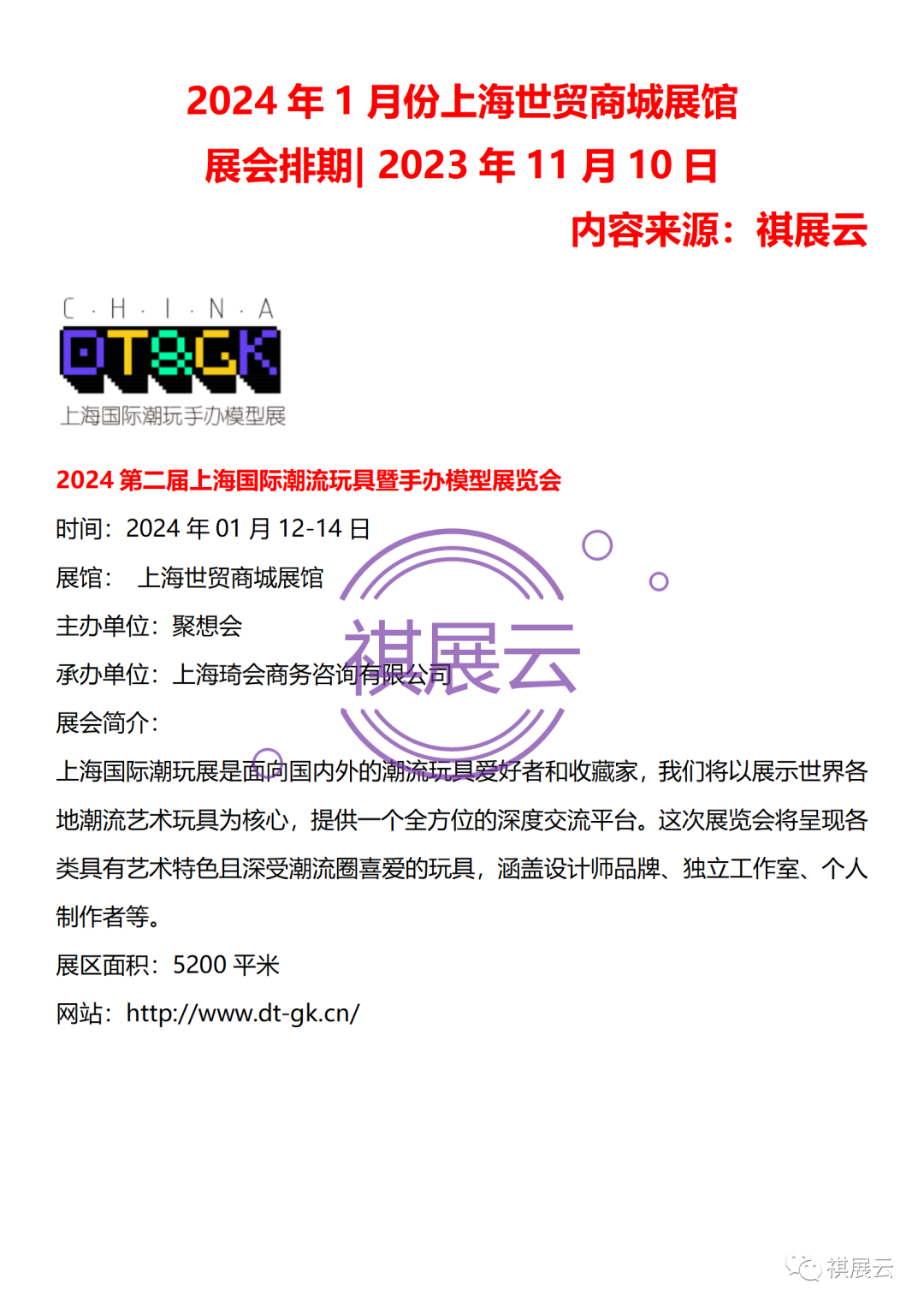 2024年1月份上海世贸商城展馆展会排期| 2023年11月10日