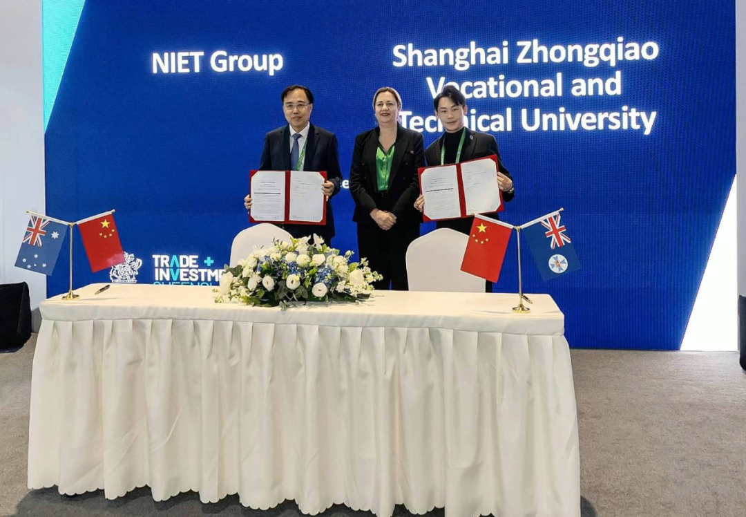 11月7日下午,上海中侨职业技术大学校长霍佳震与澳国立教育集团首席执行官岳挺在第六届进博会2.2馆共同签署了《上海中侨职业技术大学与澳国立教育集团战略合作框架协议》,澳大利亚昆士兰州州长白乐琪到场祝贺,见证这一重要时刻。
