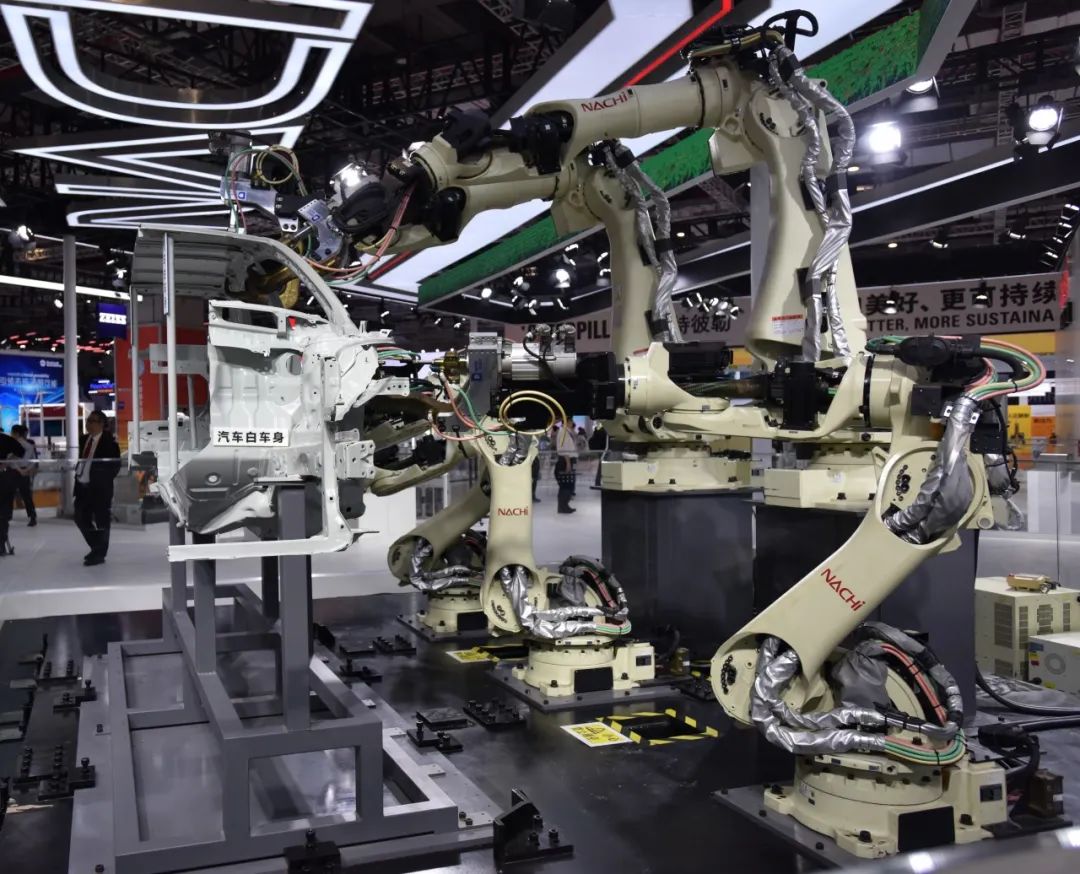 在第六届进口博览会上,汽车生产车间的工作场景被不二越在进博会上展示。展台最引人瞩目的是由5台大型机器人组成的高密度车身点焊机器人岛。SRA系列机器人可通过长臂机器人与短臂的组合,实现上下两层的布置,并同时工作,能在有限的空间内安置更多的焊接工位,缩短了生产线长度,还原了汽车车身焊接的场景。同时,展台上还有5台机器人组成的新能源汽车用电池组装系统,演绎了插头插入,螺丝拧紧,涂胶,盖板盖的模拟场景。