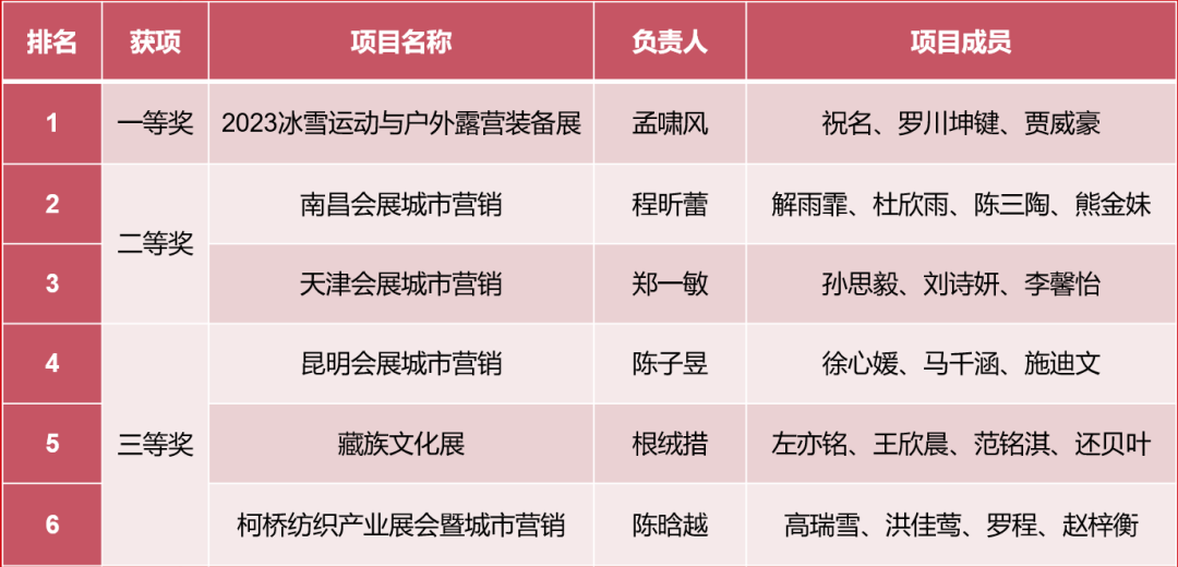 恭喜以上获奖团队!目前,排名前四的4支团队正积极参与2023年(第十七届)全国高校商业精英挑战赛会展专业创新创业实践竞赛总决赛。预祝同学们取得好成绩!