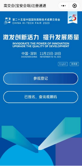 第25届中国国际高新技术成果交易会将在深圳会展中心(福田展区,11月15日-19日)和深圳国际会展中心(宝安展区,11月15日-18日)举办。