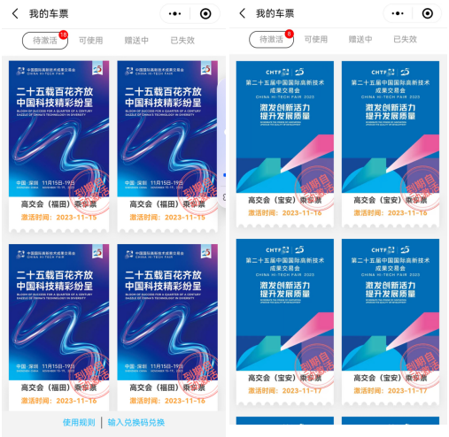 (1)报名成功后用报名手机号登录微信小程序“深圳通+”【乘车票】或“深圳通”APP【我的】-【车票】中查看及使用乘车票。如您未在“深圳通APP”或“深圳通+”小程序【我的车票】-【待激活】或【可使用】中看到展会乘车票,可能是您未登录深圳通账户,或者登陆的深圳通账户所使用的手机号与您参展报名使用的手机号不同所致,请切换登录的深圳通账户手机号即可。