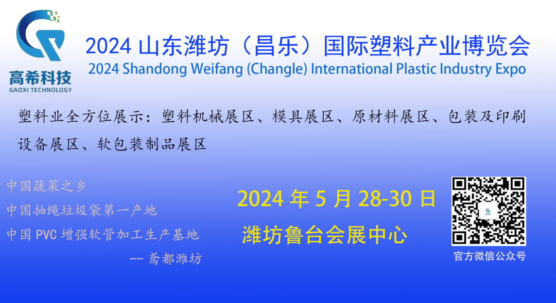 ■ 2024中国潍坊(昌乐)塑料产业(新材料、新技术、新装备)博览会集中展示塑料行业各类新材料、新技术、新产品、新设备等,是华北地区的行业盛会。