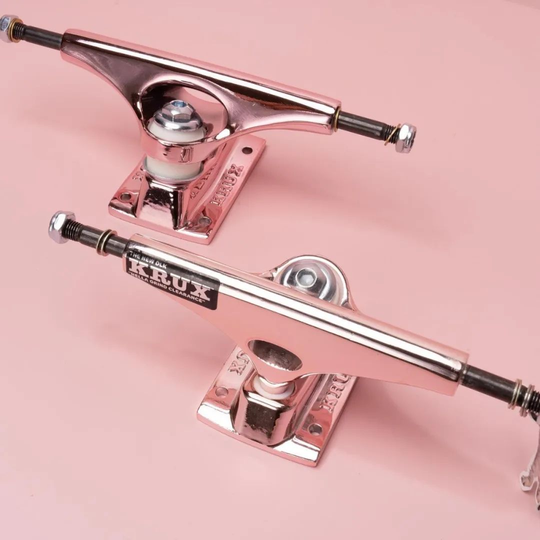 Krux桥的命名系统与众不同,它给每个尺寸随机分配了数字。有的桥宽度命名不包括两边轴的长度,有的桥以毫米为单位。而Krux则是以滑板的宽度来命名,这种命名系统可以让滑手更容易地找到适合自己滑板的桥。