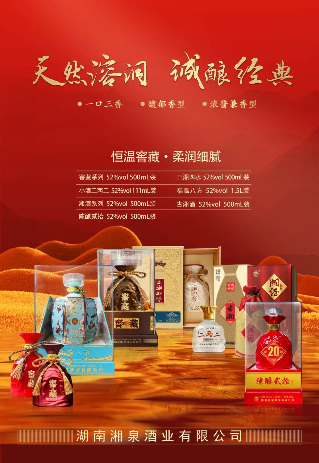 【湖南湘泉酒业有限公司】自营产品三湘四水洞藏系列、古湘酒系列、文酿窖藏系列、文酿二两二、陈酿系列空白区域招商,欢迎咨询!期待与您的合作!