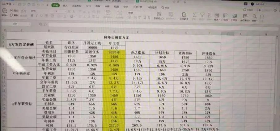 (二)厨师长年薪制