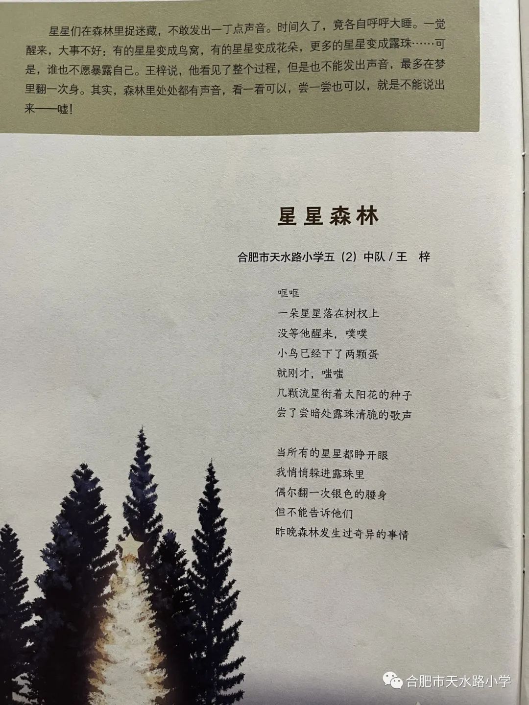 合肥市天水路小学的童诗作品在少年博览9月刊(阅读与写作版)发表啦,小作者是五年级二班的王梓。