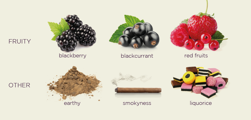 凉爽气候下,皮诺塔吉拥有红果、皮革、辛香料的风味;温暖气候下,则有着黑莓、甘草、野味的味道。