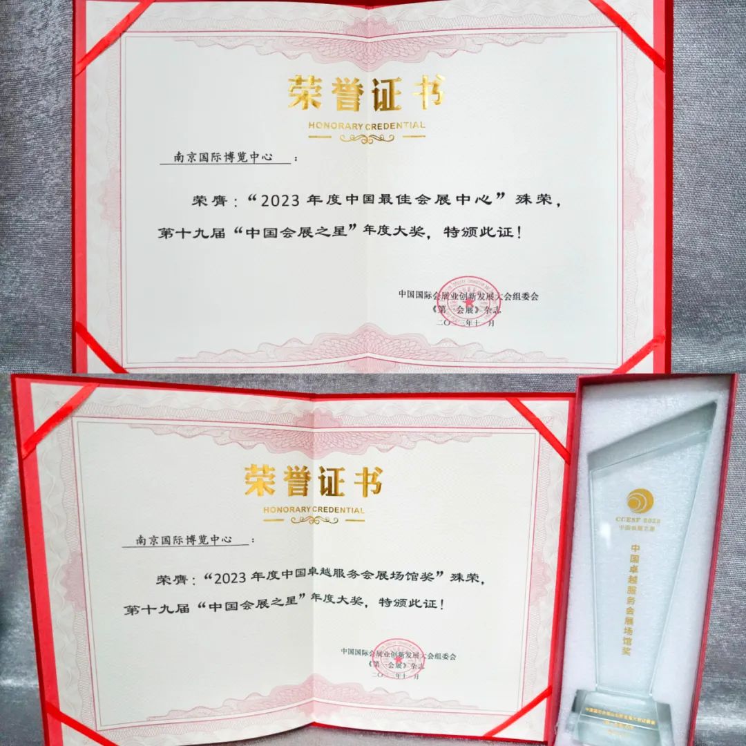 会上,南京国际博览中心荣获“2023年度中国最具影响力会展综合体”奖。