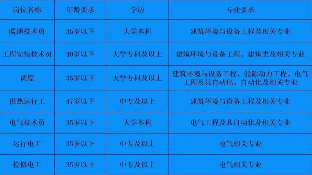 山西华鹿热电有限公司是内蒙古华鹿能源发展集团的全资子公司,被河曲县人民政府授权独家经营河曲县城集中供热,供热面积380余万平方米,几年来我公司逐步提高供热技术,利用智慧供热平台服务不断提高供热服务水平,供热效果得到广大热用户的好评。二、招聘岗位信息